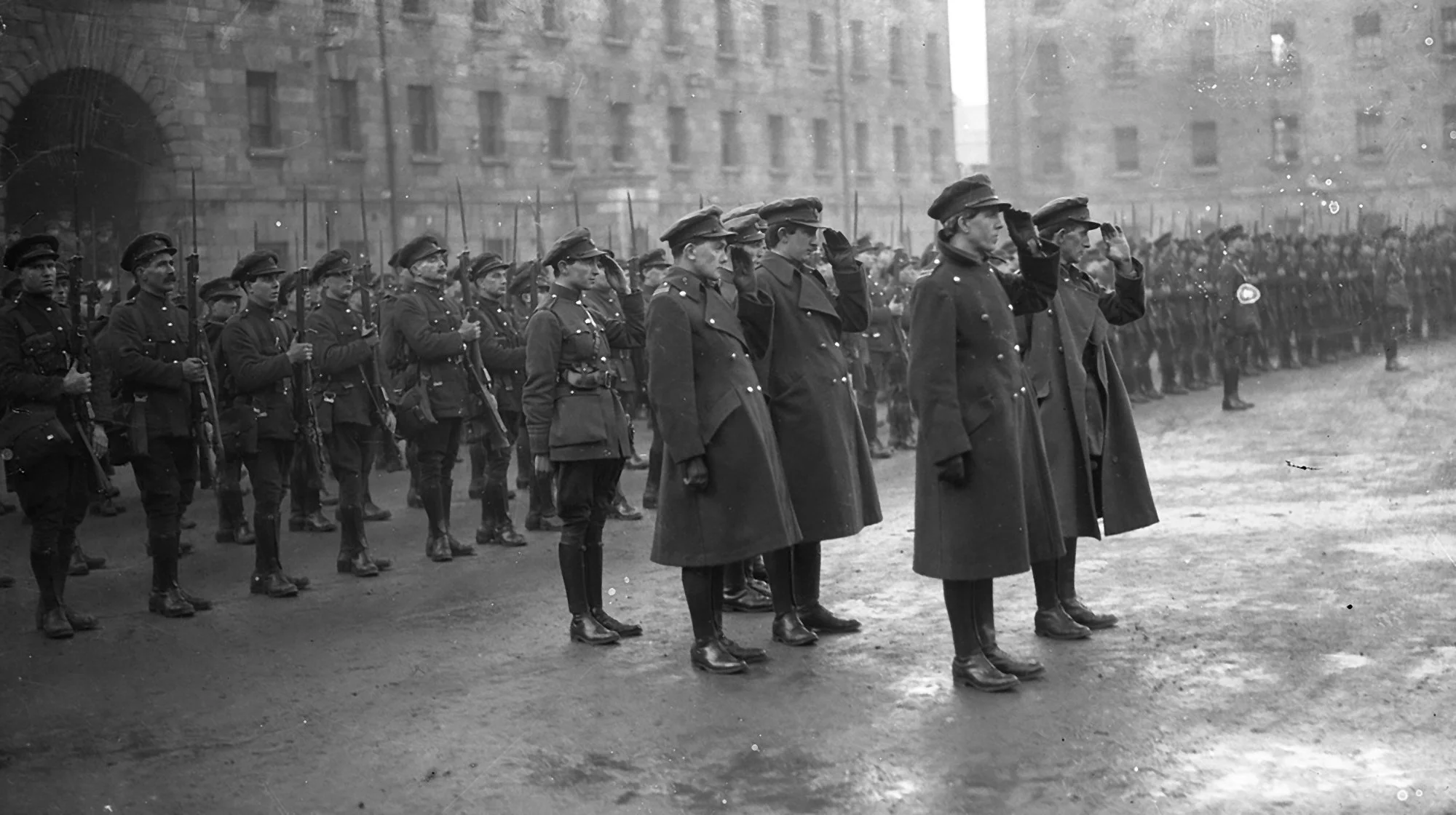 Ag ardú na Brataí: Céad Bliain ó Tugadh na Beairicí ar Lámh Gaeilge Raising the Flag:The Centenary of the Handovers of our Military Barracks English